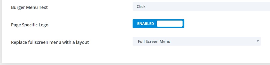Header 选项卡添加了 8 个开关和自定义项。 您可以删除标题下划线、使电话号码可点击、在新选项卡中打开社交链接、将顶部标题项居中、在滚动时使用不同的徽标、更改汉堡菜单文本、使用特定于页面的徽标以及替换Divi 布局的全屏菜单。