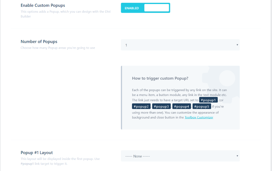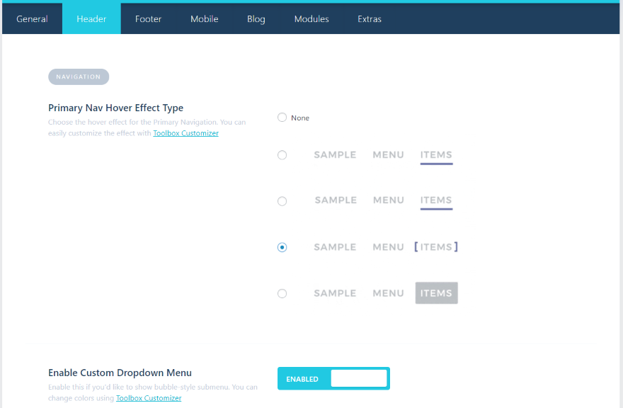 Divi 工具箱选项屏幕已添加到 Divi 仪表板菜单中。 此处启用设置,但在自定义程序中进行调整。