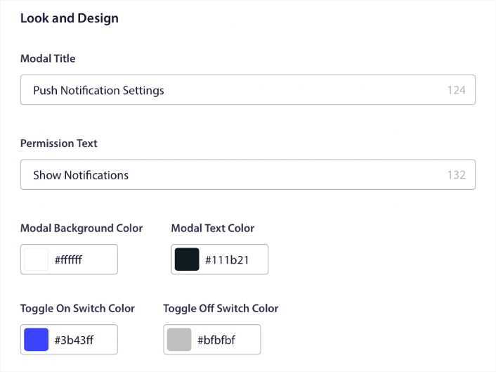 然后,在Notification Look and Design下编辑您的推送通知副本: