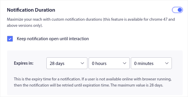 - Select Campaign Expiry在您的推送通知中设置了一个硬性的到期日期,因为降价通常是有时间限制的。