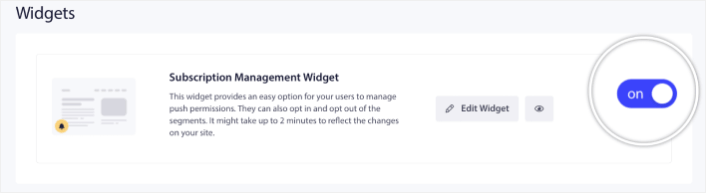前往 PushEngage 仪表板并转到Design » Widgets并启用Subscription Management Widget :