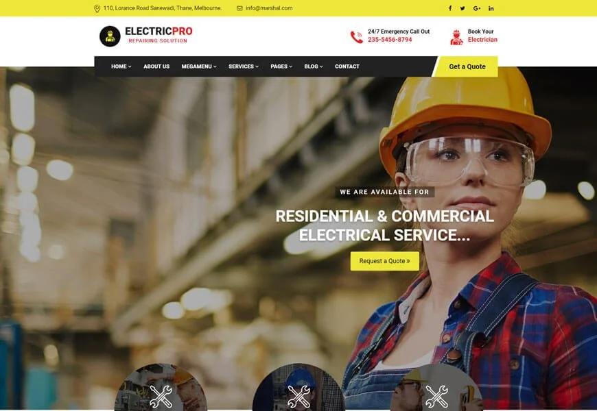 Electricpro 是另一个不错的引导 HTML 模板,是一个令人难以置信的电气公司网站模板。 在兼容性和丰富的功能方面,它尤其令人印象深刻。 无论您对优秀模板的期望是什么,包括响应式设计,都只是这个电气服务网站模板的锦上添花。 使用附加元素,例如 Slider Revolution 插件,您将获得最高的评价! 使用此滑块插件,您可以在站点的任何位置创建幻灯片,以使用 Electricpro 展示您的项目和其他内容。 更重要的是,您可以通过免费获得插件来节省 26 美元。