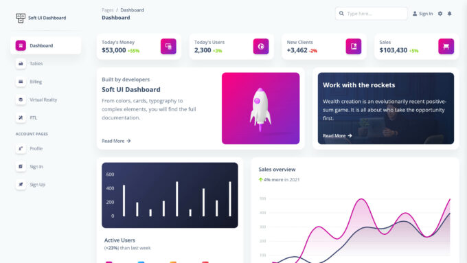 当谈到 Argon Dashboard 如此受欢迎的一些原因时,100 个组件的选择、4 个自定义插件和 6 个示例页面可以帮助解释为什么它被如此频繁地下载。 查看 Argon Dashboard 管理模板的实时预览可以很好地了解此选项的受欢迎程度。 如果您确实查看了演示仪表板,您会发现 Argon Dashboard 具有现代设计,可与当今可用的最佳管理模板相媲美。 这种设计在最流行的 SaaS 产品和桌面应用程序上不会显得格格不入。