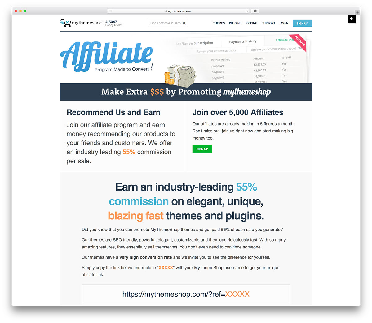 MyThemeShop 为您带来的任何新客户提供 55% 的佣金。 我们在我们的网站上使用他们的联盟计划并强烈推荐它。