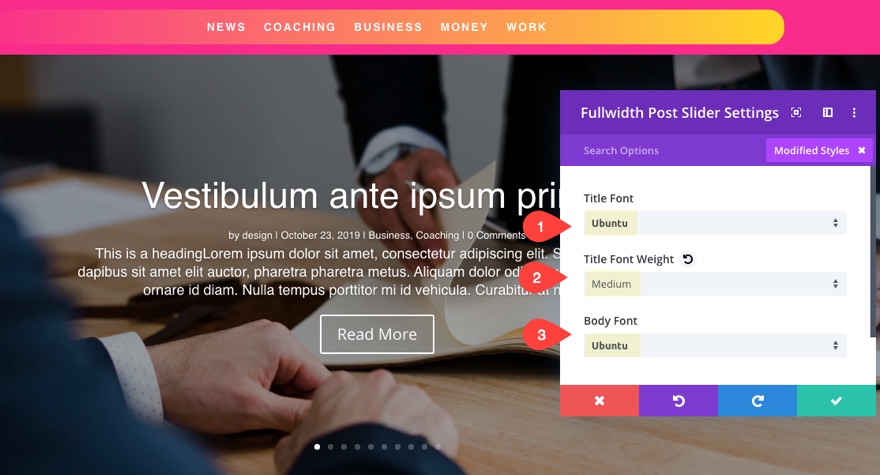 对于此布局,让我们将帖子滑块拖动到页面顶部,以便顶部粘性类别菜单位于滑块下方。