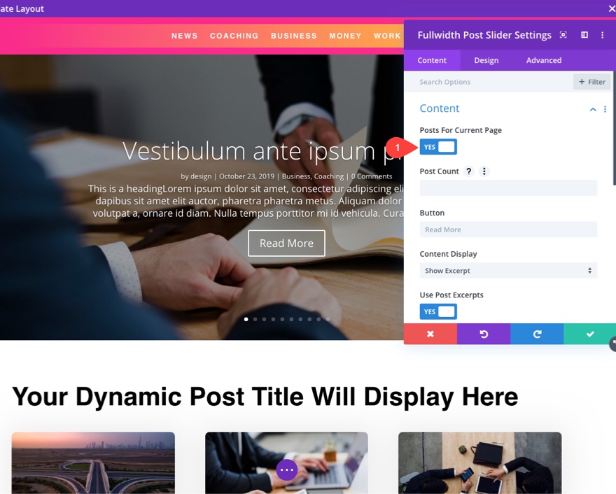 设置内容以拉取“当前页面的帖子”。 然后将确保它为博客页面提取正确的动态内容。