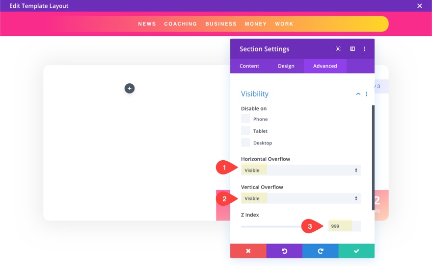 为了防止任何菜单下拉菜单被隐藏,我们需要确保并将我们的部分和行的可见性设置为可见。 另外,我们还需要给 z 索引一个较高的数字,以保持整个菜单顺序高于页面上的所有其他内容。 这将需要最大化移动下拉菜单和粘性菜单的可见性。