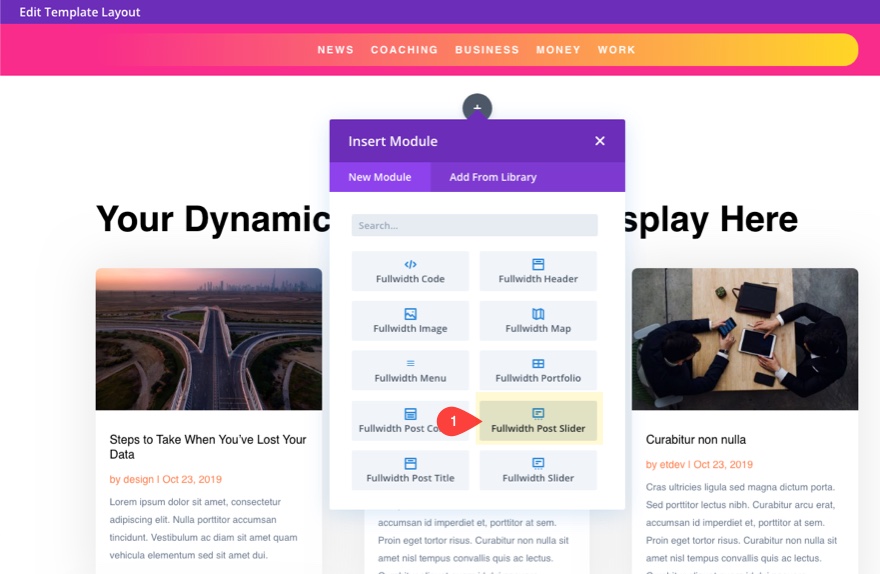使用模板布局编辑器设计博客模板。 现在,让我们在页面顶部给它一个漂亮的全角帖子滑块。 为此,请创建一个新的全角部分。