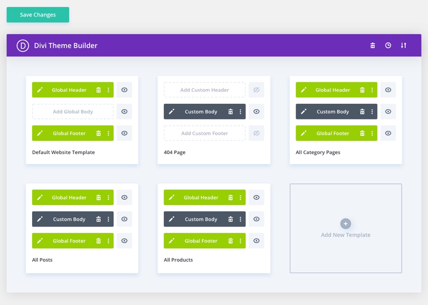 在本教程中,我们将使用 Theme Builder Pack #6。 从博客文章下载包后,转到 WordPress 仪表板并导航到 Divi > Theme Builder。