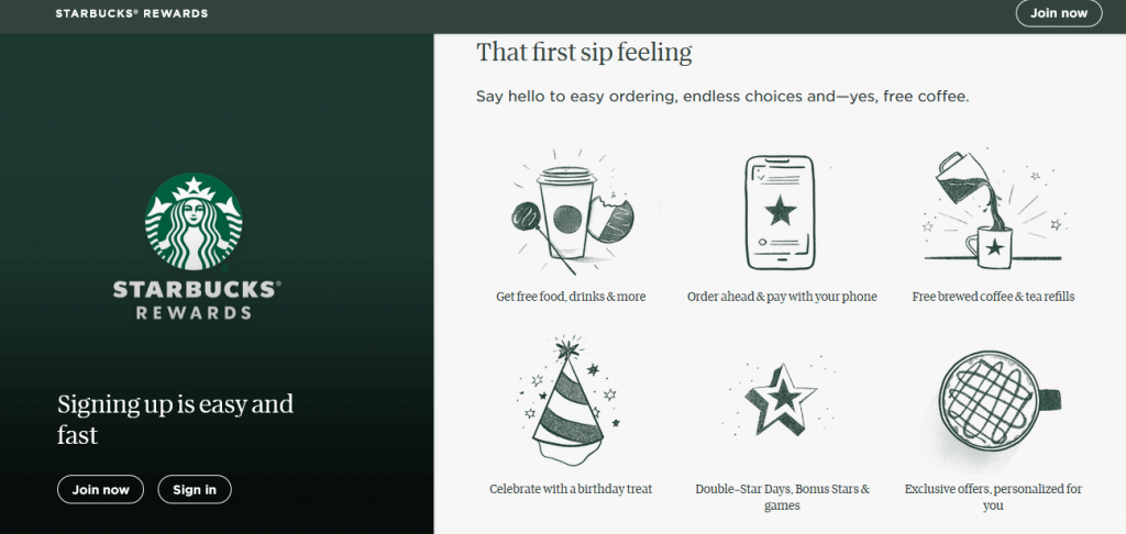 我们来看看星巴克顾客忠诚度计划、星巴克奖励计划:
