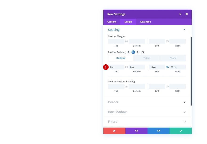 要在桌面行的左侧和右侧添加空白,我们将使用视口宽度单位添加一些自定义的左右填充。