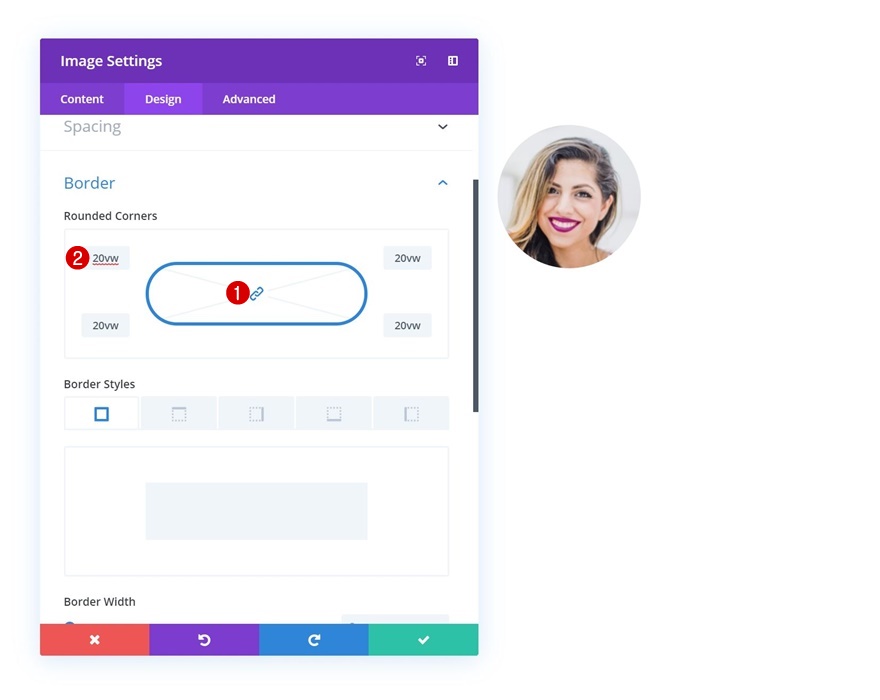 并通过为边框设置中的每个角添加高值将图像变成圆形。 我们使用的是“20vw”,但您可以使用任意大的数字。