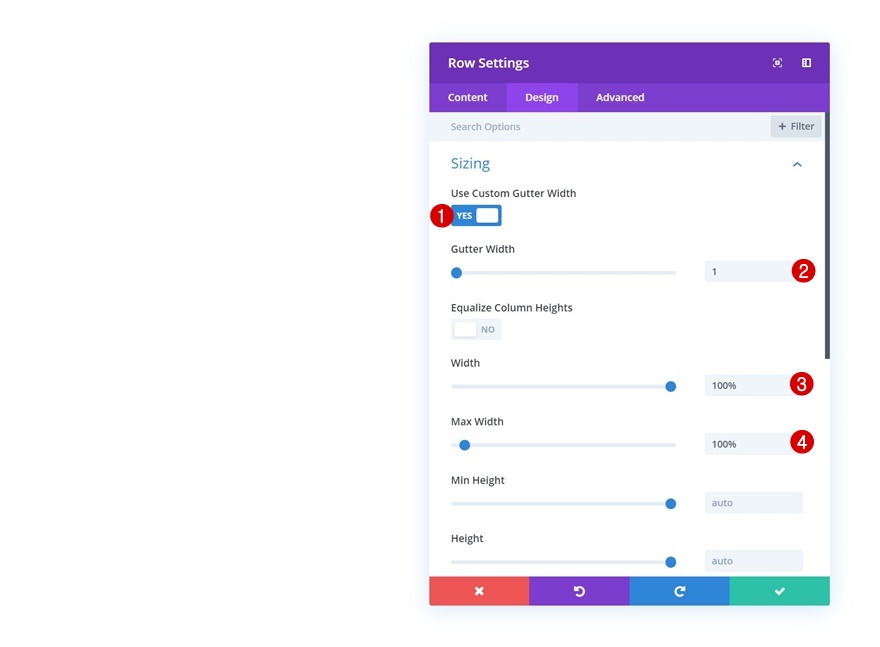 在不添加任何模块的情况下,打开行设置并允许行占据部分和屏幕的整个宽度。