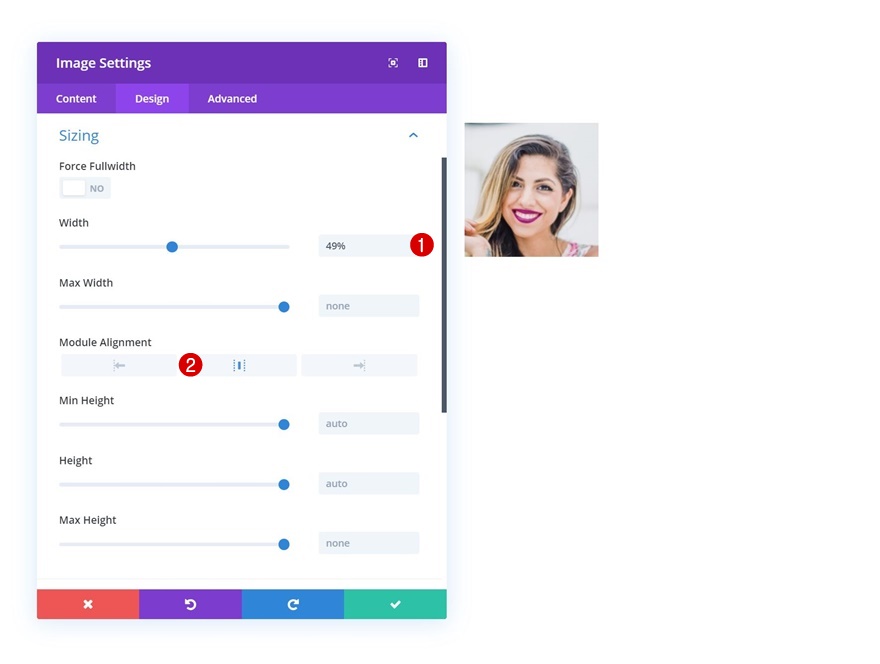 转到图像模块的大小设置并启用“强制全宽”选项。