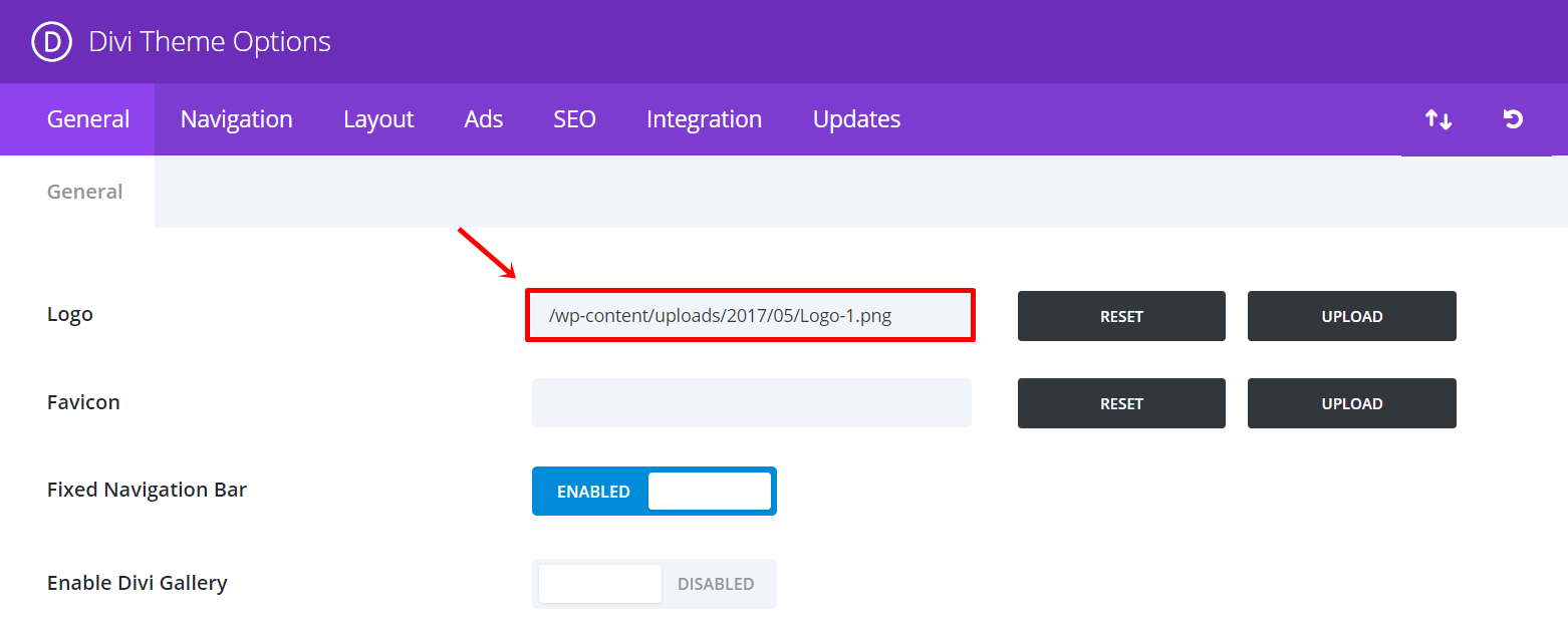 首先转到Divi > 主题选项 > 并上传您想在整个网站中使用的徽标。