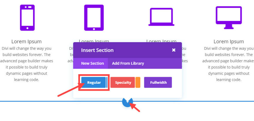 使用 Visual Builder,添加一个带有全角行列的新常规部分。