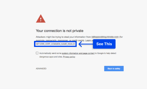 具体问题 NETERR_CERT_COMMON_NAME_INVALID 将列在主要消息下方。