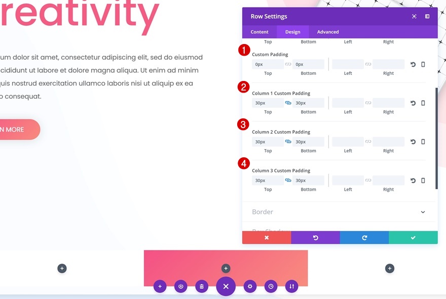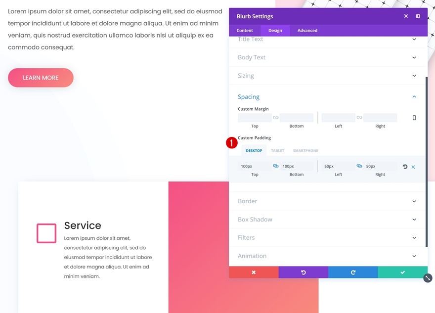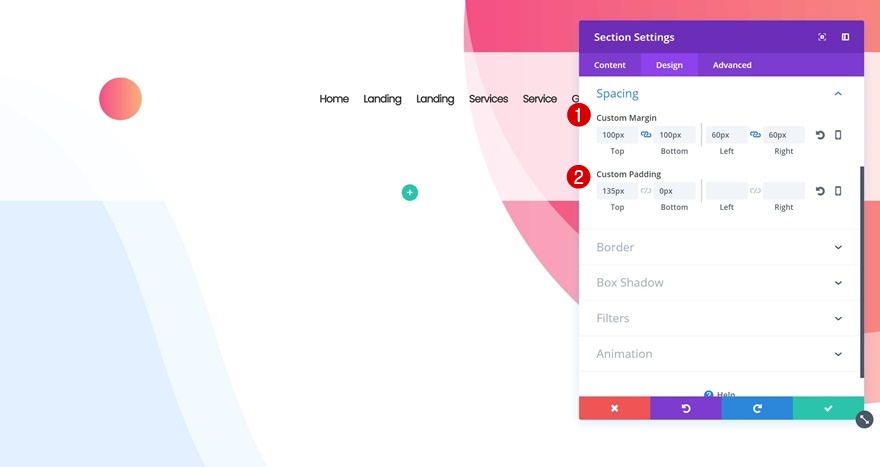 继续转到间距设置并添加以下自定义边距和填充: