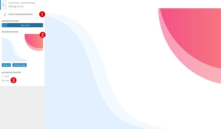 然后,转到“常规设置”>“背景”并将图像上传到您网站的背景。