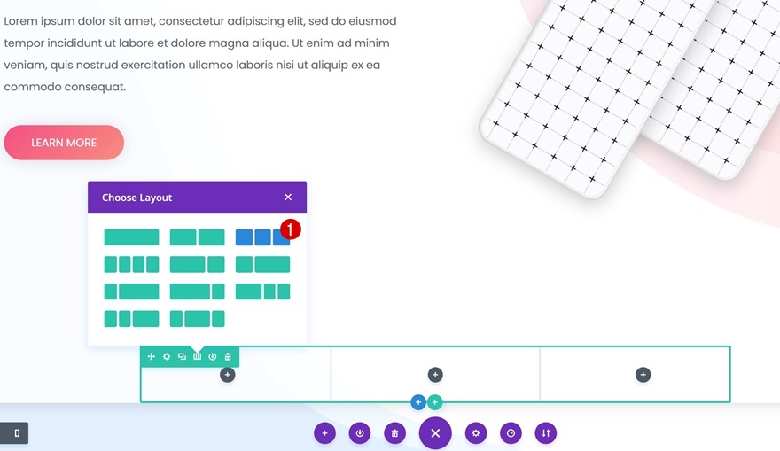 是时候开始添加行和模块了! 使用两个大小相同的列添加第一行。