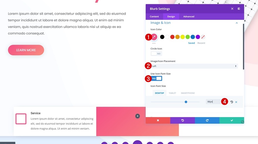 第三个 Blurb Modules 不需要任何更改,但是第二个需要。 首先将图标颜色更改为白色。