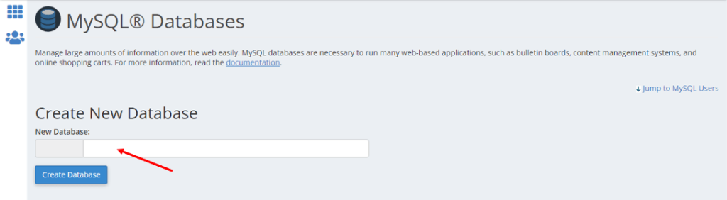 - 在 cPanel 中,找到“数据库”部分,然后单击“ MySQL 数据库”。
