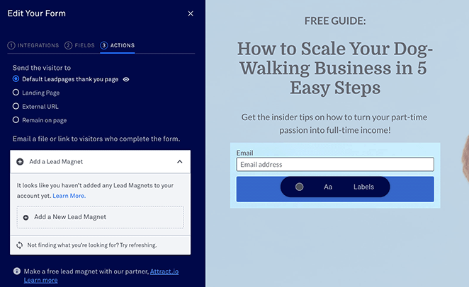 表单小部件是 LeadPages 的一个重要卖点。 您可以使用它来收集网站访问者的电子邮件地址并增加您的电子邮件列表。