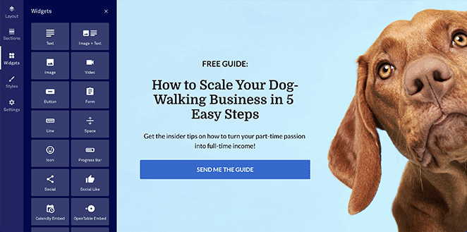 所有 LeadPages 元素都以这种方式工作,包括其选择的页面构建器小部件。 这些小部件中最值得注意的是表单小部件,它允许您将可自定义的注册表单添加到您的页面。