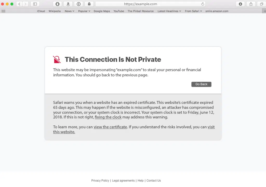 如果您是 Safari 用户,“NET::ERR_CERT_AUTHORITY_INVALID”错误的显示方式将与其他浏览器完全不同。