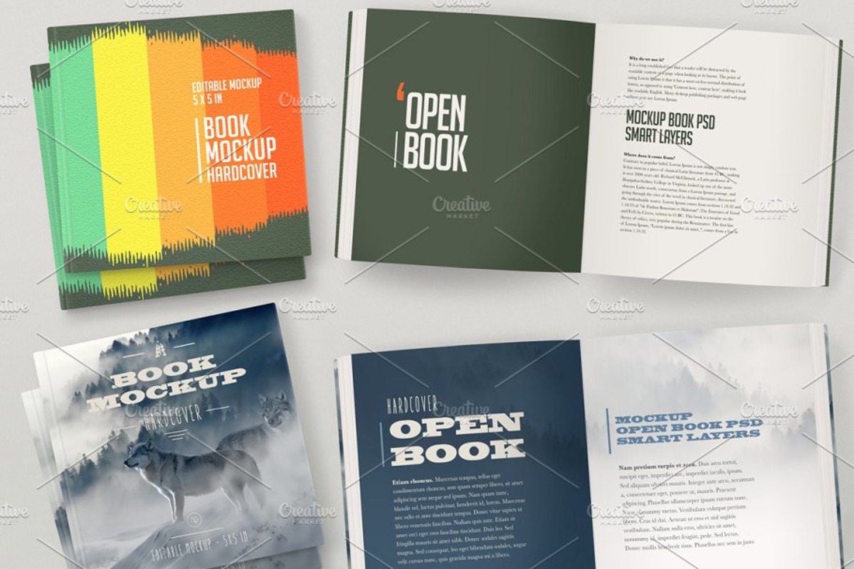 这是另一个打开的书模型,但在这里您可以在精装书上看到设计。 它包括 2 个完全分层的易于定制的 PSD 文件。 除了更改书籍封面和内页的设计外,您还可以自定义效果、灯光、背景和阴影。 智能图层功能使定制过程变得快速而简单。 对于设计过程中的任何类型的指导,您可以浏览模型随附的教程文件。