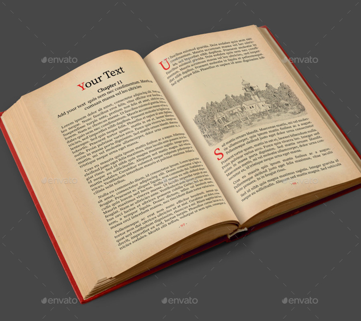 这是另一个具有复古风格的开放式书籍模型。 这里的书有点变形,黄页,金角,红丝带,封面有划痕。 手工制作的插图使模型难以忽视。 这种具有透明背景的高分辨率 PSD 模型可通过智能图层完全编辑。 打开智能对象,将您的设计放入其中,点击保存,您的工作就完成了。 只需单击几下,即可准备好精美的演示文稿。
