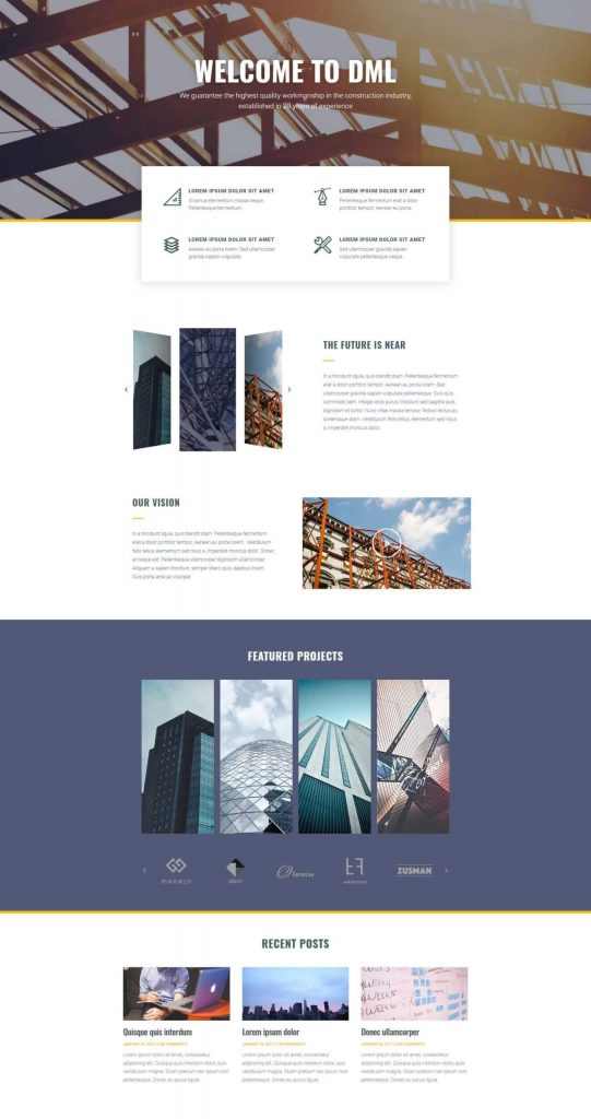 接下来在我们的 Elementor pro 模板列表中,我们将介绍完美的模板。 它可以帮助您创建建筑公司的主页。