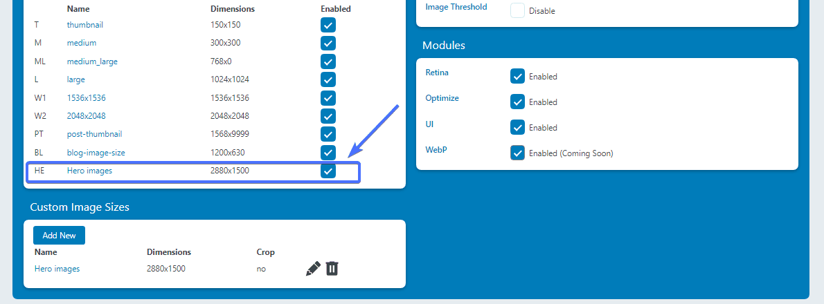 就是这样。 现在,当您将新图像上传到网站时,您将看到新图像尺寸作为一个选项。