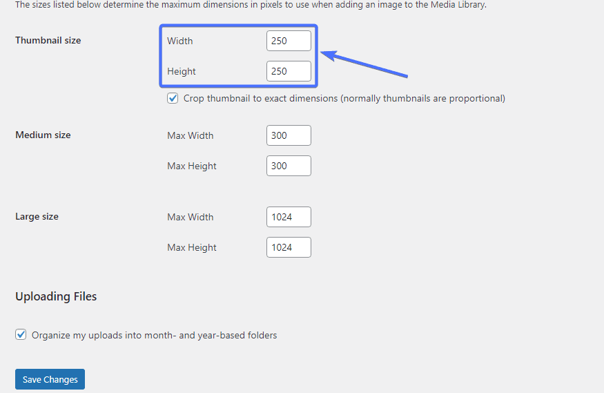 您可以将默认的 WordPress 图像大小设置为您想要的任何大小。
