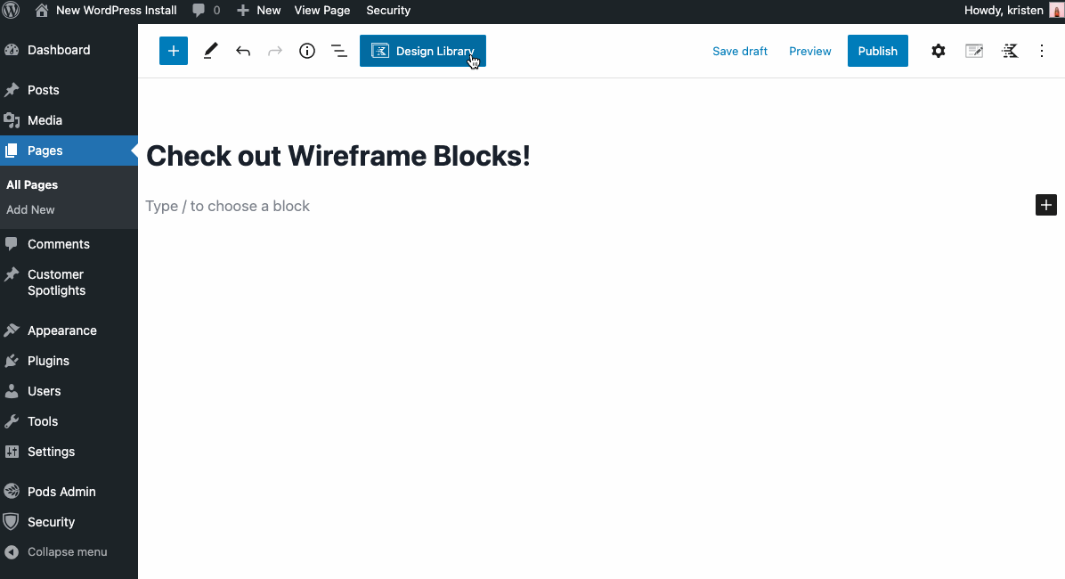 假设您需要为客户模拟一个新的页面设计。 无需使用单独的应用程序或使用单独的工具绘制设计草图,现在您可以直接在 WordPress 内提供线框模型。