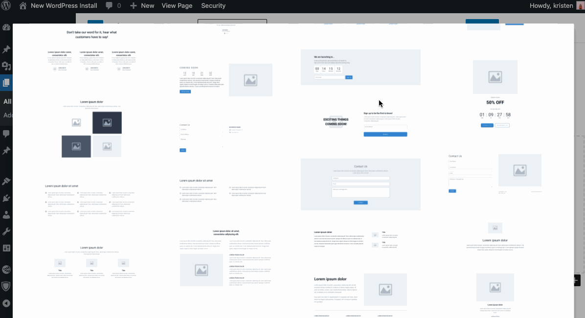 查看您可以在 Kadence Blocks 设计库中使用的所有不同线框模块: