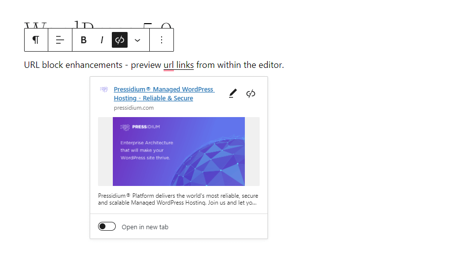 现在,您可以在编辑器中查看带有预览的 URL。 像这样看似简单的改进可以让日常 WordPress 用户的生活变得更加轻松。