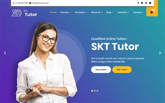 SKT Education 是此类平衡的教育和学习相关 WordPress 书店主题之一,为您提供使用简单性和性能灵活性的巧妙结合。