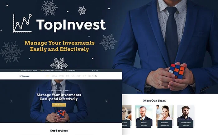TopInvest 是一个高利率模板,它不会让您孤单地向您的目标受众保证您的公司将有效、轻松地管理他们的投资。 这个令人信服的主题与旨在描述您业务的各个方面的各种附加页面相结合。 除此之外,通过强大的 Cherry 插件,您将准备好让人们熟悉您的才华横溢的团队。