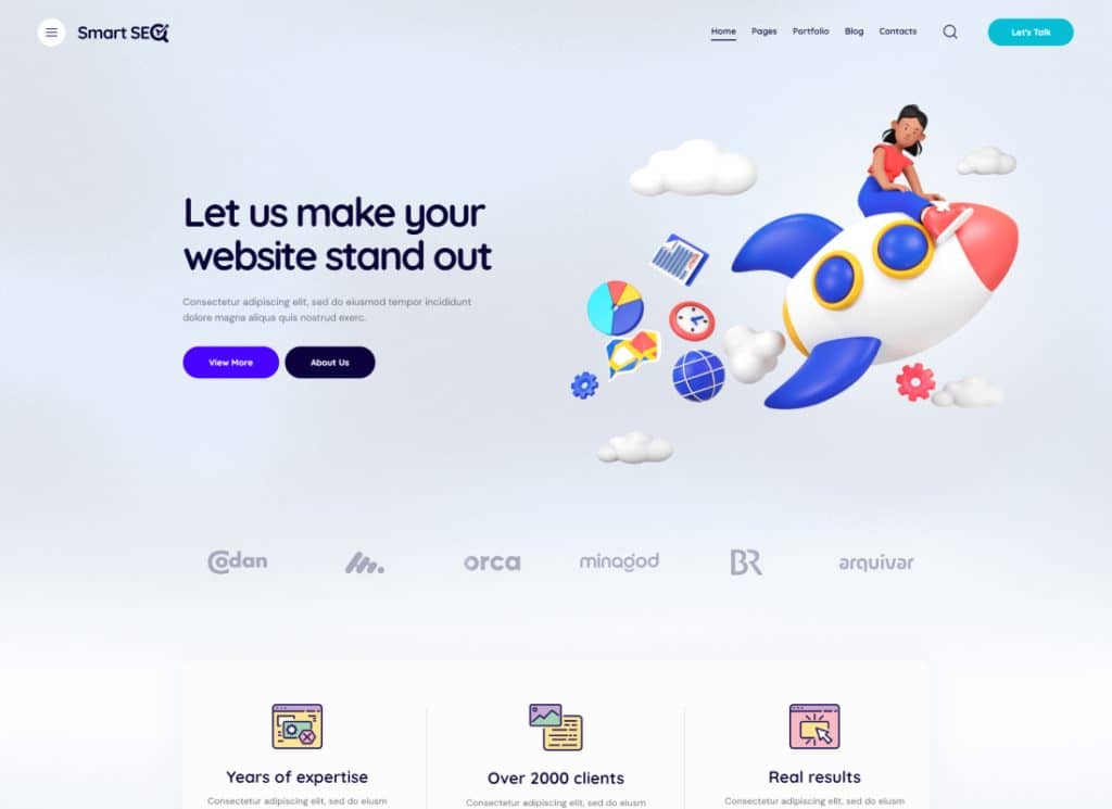 SmartSEO 不僅僅是一個 WordPress 主題,它是一個強大的工具,其設計考慮了簡單性、吸引力、活力和功能。 SmartSEO 專為現代數字營銷公司和 SEO 服務而設計,使您能夠創建有影響力的在線形象。 憑藉其用戶友好的功能,您可以使用 Elementor、最流行的頁面構建器、短代碼和媒體內容管理器輕鬆創建和自定義頁面。 只需幾分鐘即可構建您自己的創意佈局,給您的訪客留下持久的印象。 借助 SmartSEO 針對移動設備的全面響應能力和優化來擁抱移動革命。 該主題無縫支持觸摸屏上的滾動和滑動,確保流暢直觀的用戶體驗。 此外,SmartSEO 還包含適合移動設備的滑塊,包括 Revolution Slider 插件,讓您可以在移動設備上完美展示您的內容。 SmartSEO 非常重視搜索引擎優化 (SEO)。 該主題採用優化的 HTML 代碼構建,符合最高的 SEO 標準,為您的網站提升搜索引擎排名奠定堅實的基礎。