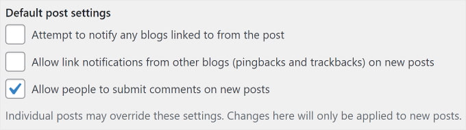 預設貼文設定提供了三個選項來管理 WordPress 網站上的互動和評論: