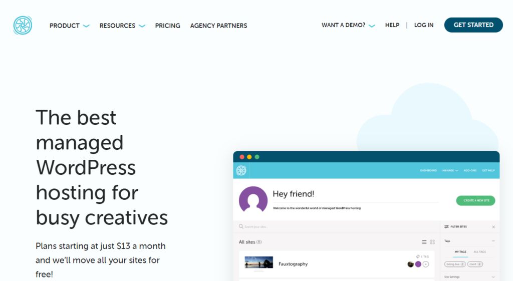 Flywheel是為自由職業者、電子商務商店和代理商提供的最佳託管 WordPress 託管。 他們為每個需要輕鬆託管網站或在線商店的人提供價格實惠的計劃。 他們為必須在預算範圍內經營業務的自由職業者或專業博主提供負擔得起的計劃。 Flywheel 還允許他們在計劃中添加額外的網站。 這是該團隊提供的最有用的功能之一。 這樣,您可以隨著業務的增長添加盡可能多的網站。