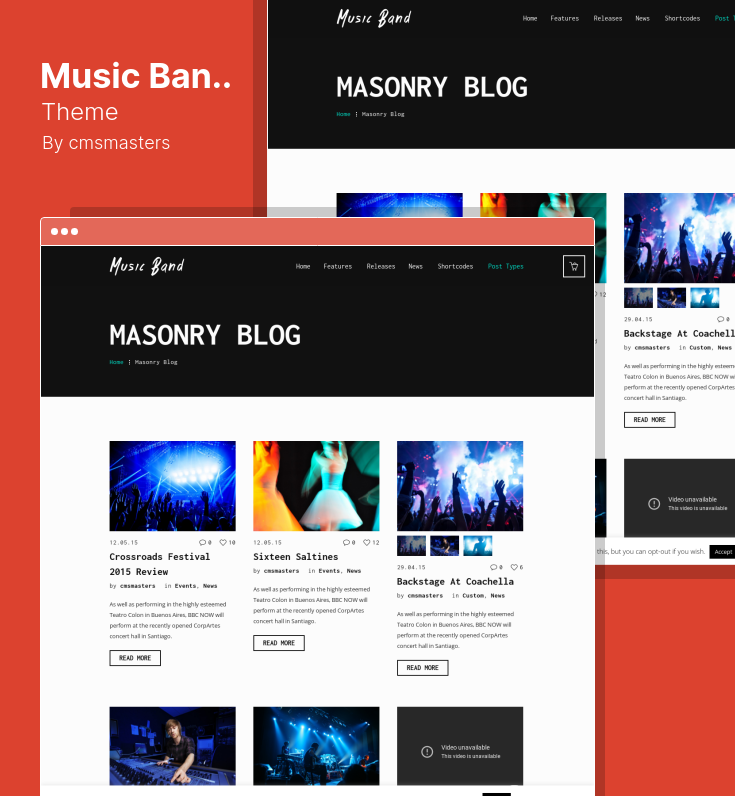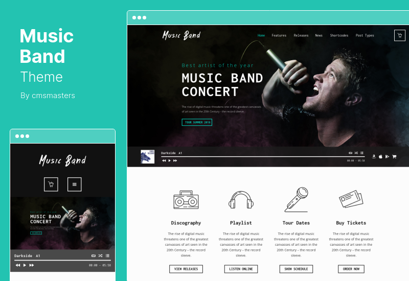 Music Band WordPress 主題可用於各種用途,例如音樂錄音室、樂隊/團體網站、音樂俱樂部/夜總會以及現場樂隊的在線曲目演示。