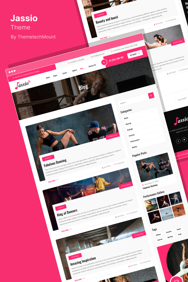 音樂行業的任何人都可以通過多種方式使用 Lush 主題。 如果您是爵士大師、朋克搖滾歌手或女高音歌手,您可以使用此舞蹈工作室主題。 它是音樂家、鋼琴家、樂隊經理和網絡管理員的理想選擇。
