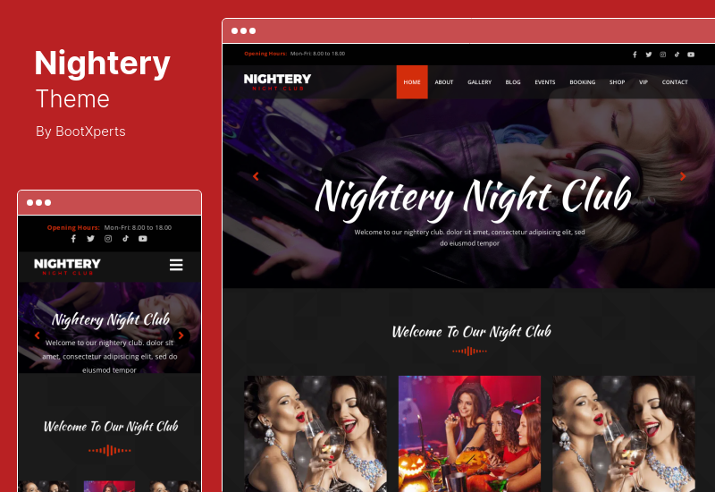 Nightery 主題對於計劃定期開設夜總會、活動或節日的任何人都非常有用。
