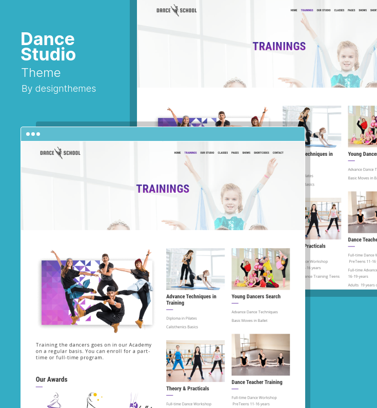 該舞蹈工作室主題專為該領域的服務提供商及其客戶設計,提供廣泛的功能。