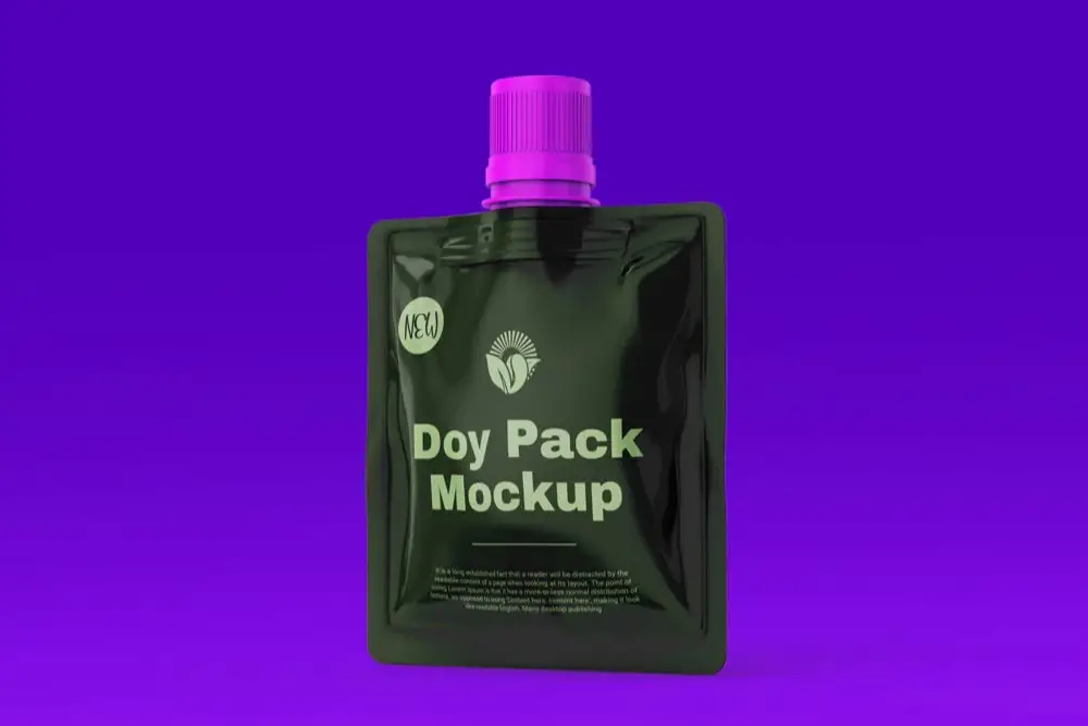 塑膠/箔 Doypack 包裝免費模型對於希望增強其包裝設計專案的圖形設計師和網頁開發人員來說是一個絕佳的工具。