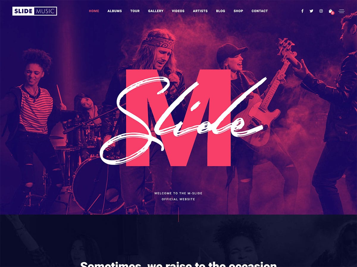如果您是專業音樂家,您會希望您的網站成為史詩般的演出、專輯銷售、追星族聚集機器。 因此,選擇一個既能展示您的才華又能讓粉絲輕鬆購買您的產品的主題非常重要。 在這兩個方面,Slide 無疑都得到了很高的評價。