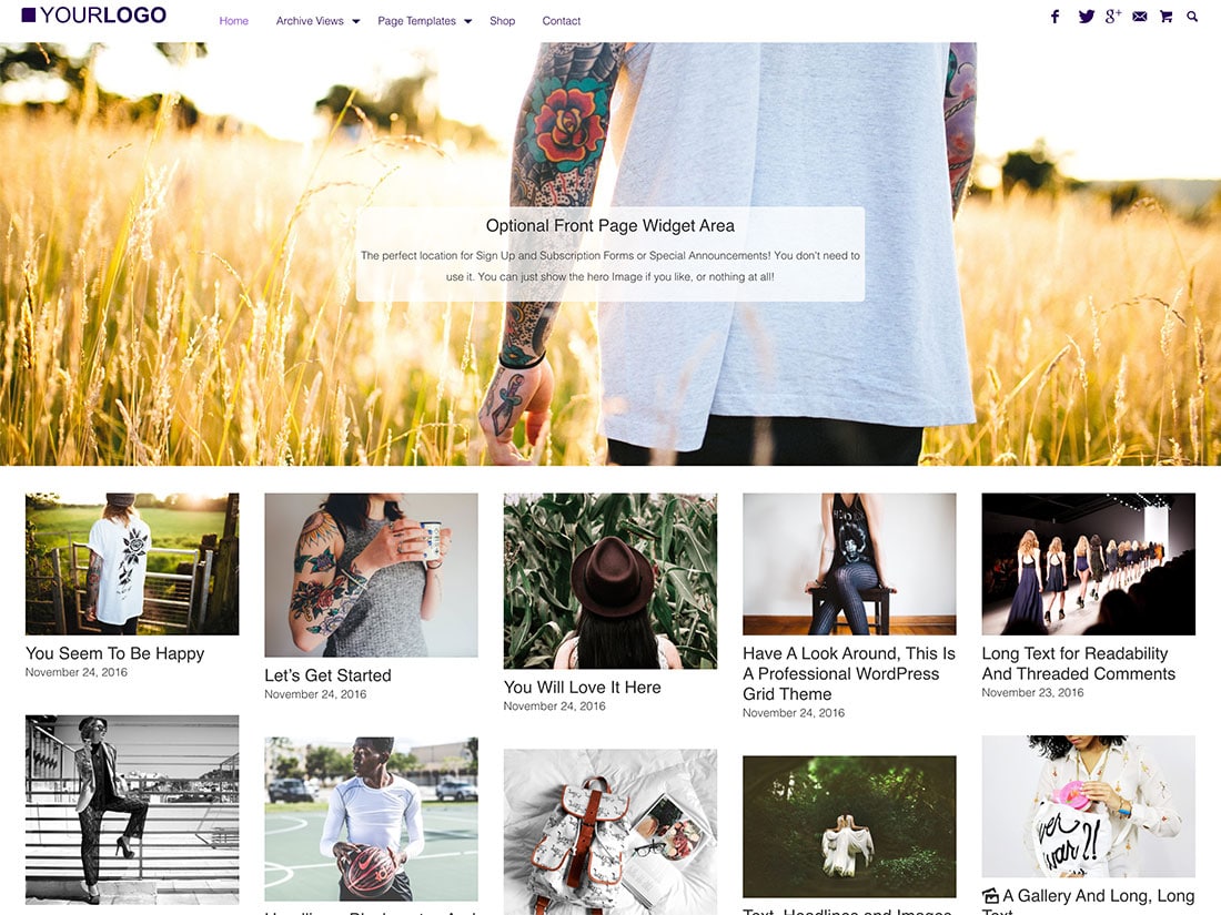 SuperGrid 是一個響應式網格主題,設計簡約,專注於內容。 功能包括網格內廣告小部件區域、彈出式導航、無限滾動、簡單的徽標上傳、頁面模板和大量顏色選項。 該主題還附帶 SEO 工具、評論和三個頁面模板(站點地圖、全角和評論)。