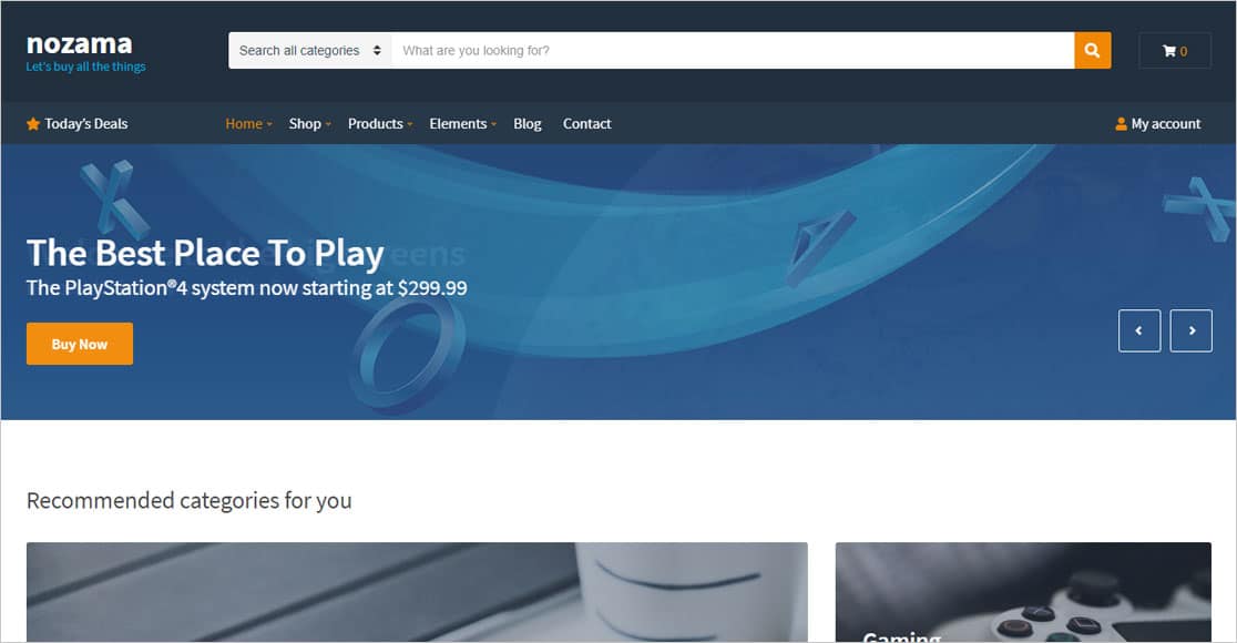 Nozama 是一個現代的 WooCommerce 主題。 它與 WooCommerce 插件集成,可將您的簡單網站轉換為強大的電子商務商店。 您可以使用拖放頁面構建器(如 Elementor)進行自定義。